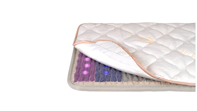 All Jet Series mats are integrated with five advanced therapies: natural far-infrared (FIR), photon light therapy, heated gemstones, negative ions, and pulsed electromagnetic field (PEMF). Jet Pillow is also integrated with the same therapies, excluding PEMF.